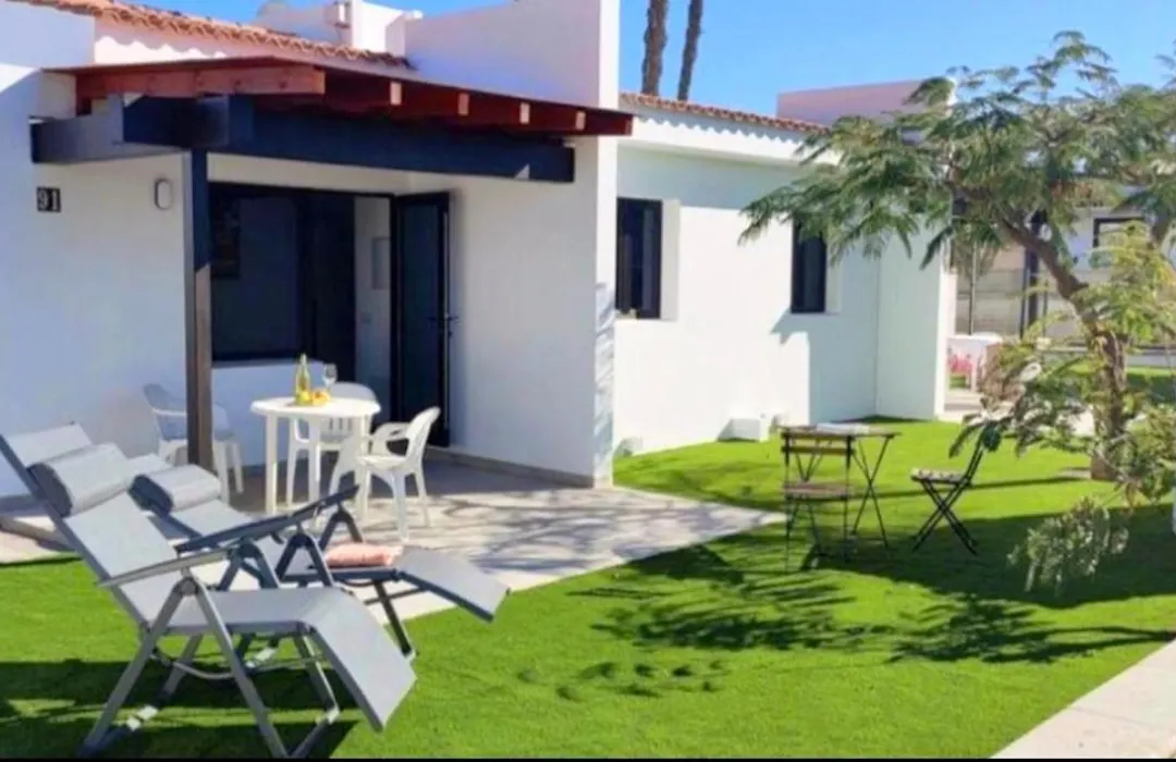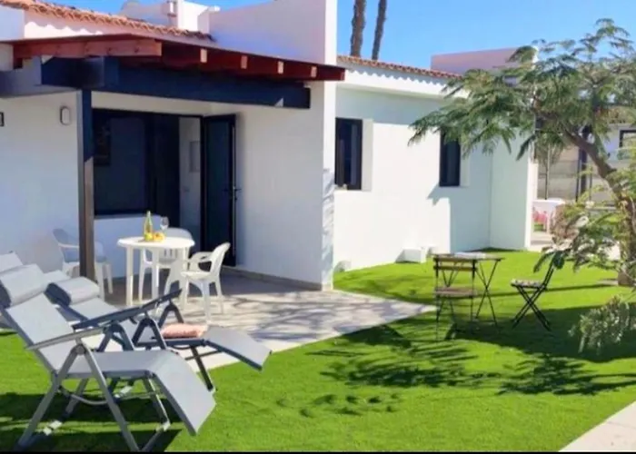 The 47 m² Sunny Bungalow With Garden #1 is situated about a 10-minute ride from Playa El Veril "Del Cochino = Strand der Schweinchen" and offers a swimming pool. Staying in the apartment, nestled at a moderate distance from Holiday World Maspalomas, guests can relax on a terrace.